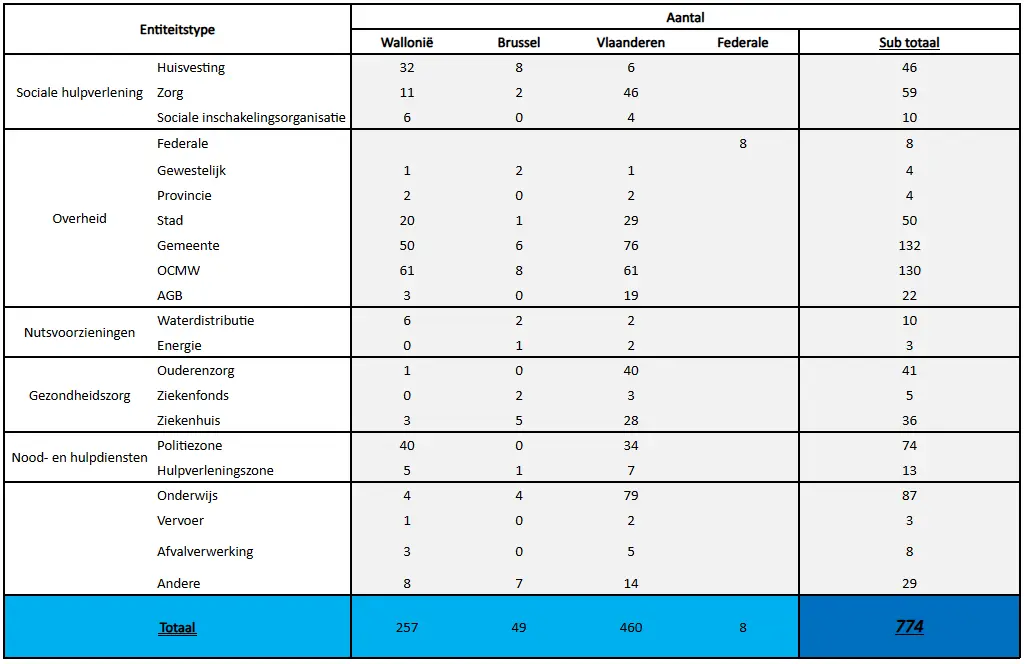 - Ziekenhuizen (universitaire en niet universitair)